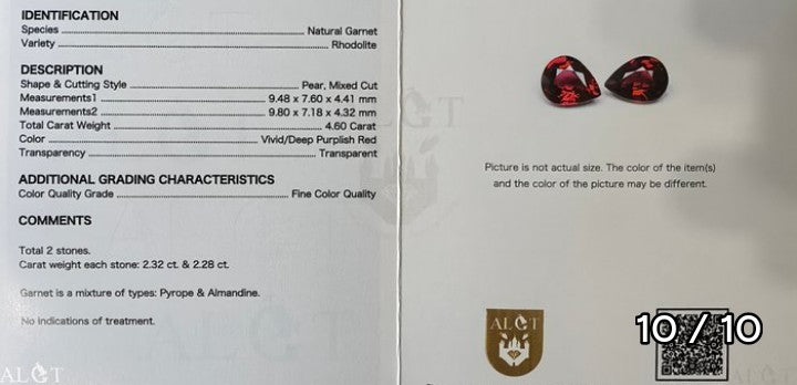 Découvrez ce duo d'exception : 4.60 carats de passion brute. Ces grenats rhodolite affichent une teinte rouge pourpre profonde, certifiée sans aucun traitement.